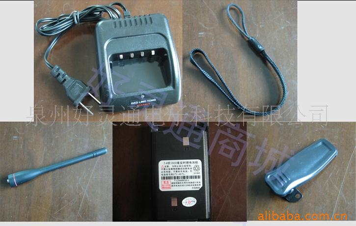 商品标配:主机、电池、天线、皮带夹、充电器+座充、耳机线、说明书