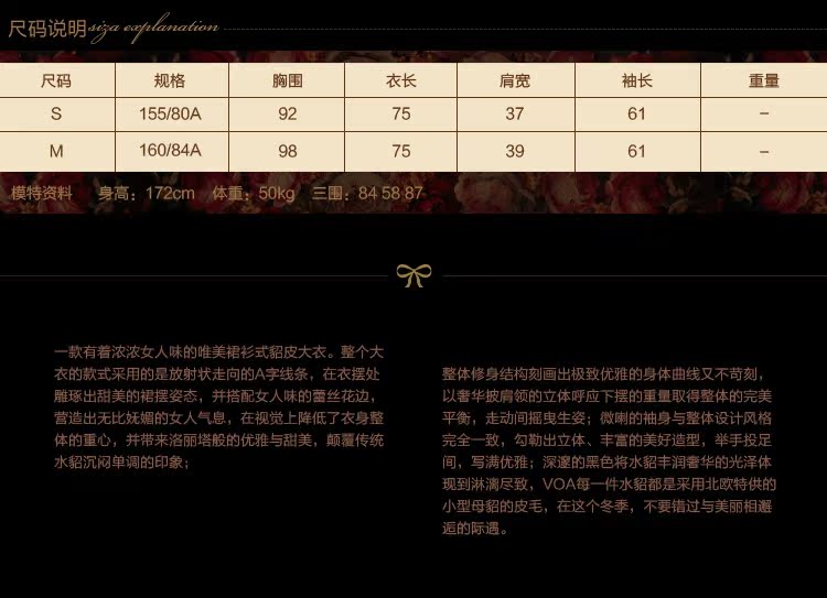VOA维欧艾 限量1件黑色带帽中长款进口水貂裘皮大衣貂绒S1039