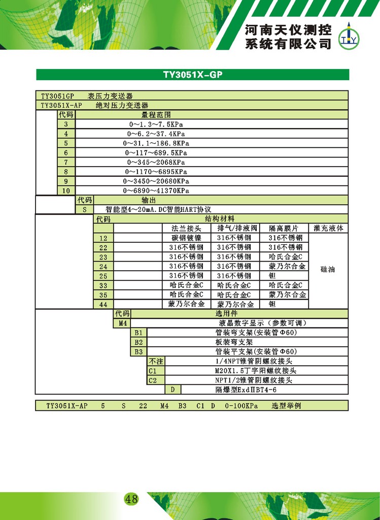TY-3051X变送器具备EJA原装表所有功能,还扩展了一些实用功能。旋转开关可PV值清零,顺时针增大,逆时针减小,可以1μA调整,也可大范围调整。强大的界面功能无需手操器,保证了良好的交互性。数字液晶显示表头,能够显示压力、温度、电流三种物理量及0-100%模拟指示,按键操作能方便地在无标准压力源的情况下,实现有源迁移、无源迁移、量程阻尼等参数的设定,可在无手操器的情况下对变送器进行量程标定和数据的恢复。