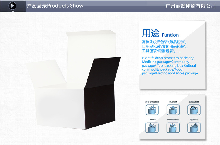 广州市丽然印刷有限公司成立于2004年4月,注册资金500万元,总资产达4000万人民币。是一家专业从事化妆品、日用品、食品、电子类产品等包装盒的印刷生产企业。