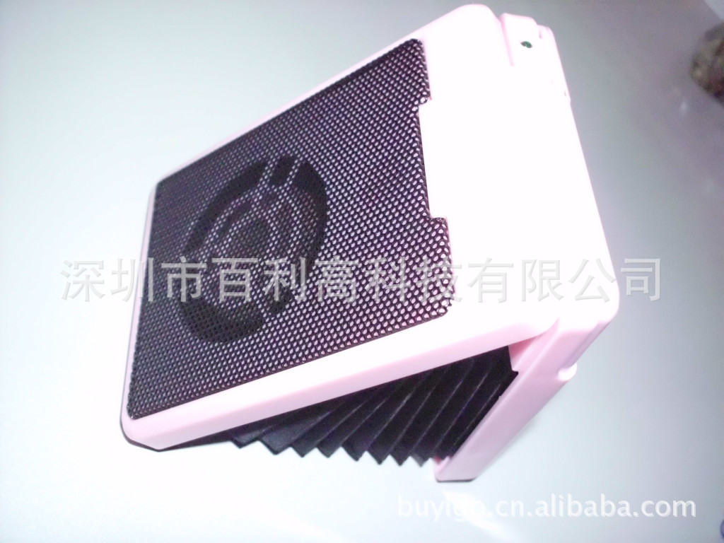 1) 我们的产品在未打开时只有钱包般大小,整体打开后的有效容积是未打开状态的十倍以上,一般3英寸喇叭的(Fo)在180Hz左右,但使用了皮腔的技术后,可以增大容积使(Fo)降低到了160Hz左右。并且有效的提高了频带的宽度,可以使音色更甜美。所以把皮腔这种技术运用在音响方面,可以把喇叭低频的最低频率点(Fo)有效降低,这也正是我们的专利。一般的小型音箱,就是受到腔体体积的困扰,所以外形做不到最小。而皮腔的压缩比可以做到1:20,很好的解决了这个问题,使我们的产品做到了音质最好,体积最小。方便携带。