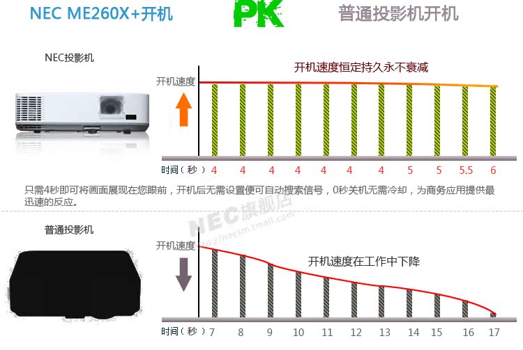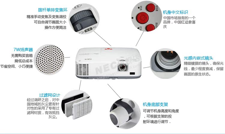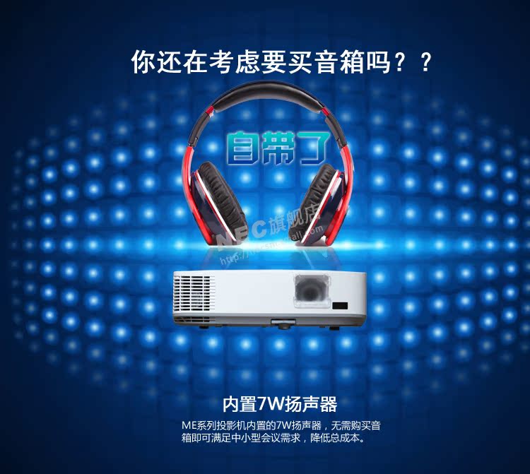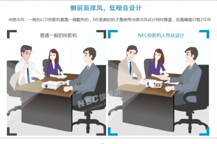 NEC ME260X+投影机拥有高亮度、高对比度,可以满足商务演示及家庭娱乐的实用需求,适合多数室内场所使用,演示文档、展示照片、播放视频等工作都可以轻松胜任。