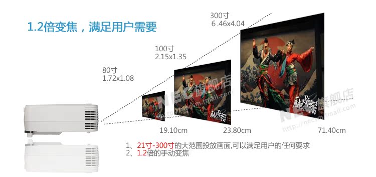 NEC ME260X+投影机采用3LCD显示技术,具备2600流明亮度,支持1024×768分辨率,兼容1600×1200分辨率,可以输出720P、1080P等高清画面,变焦比也达到了1.2倍,最大可投射300英寸的超大画面。