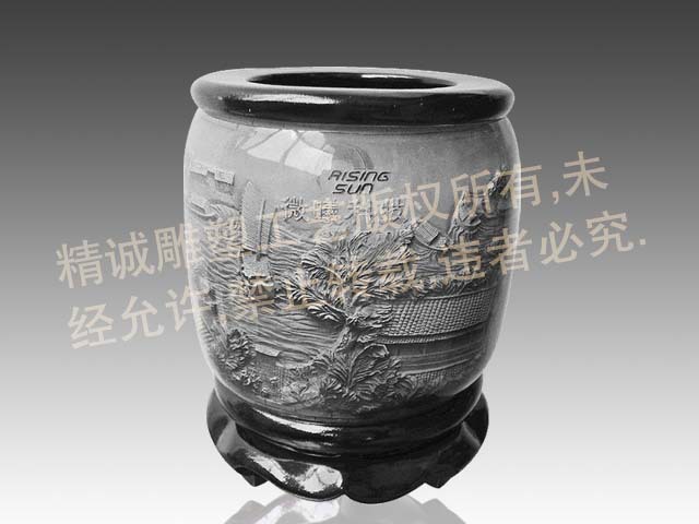 浮雕摆件/水晶浮雕定制 笔筒定做 笔筒厂家 创意笔筒 井风笔筒