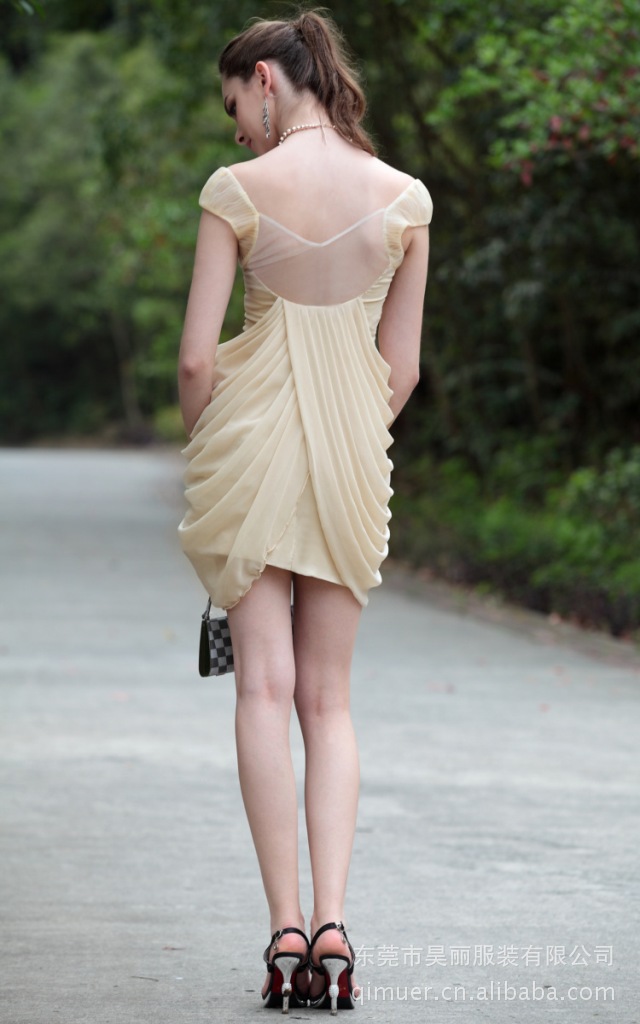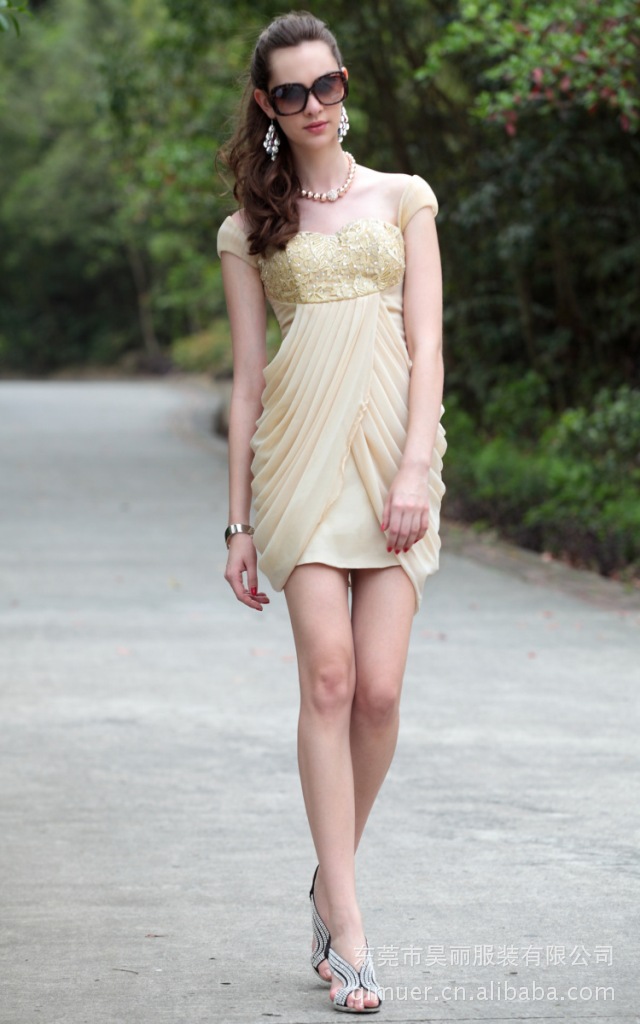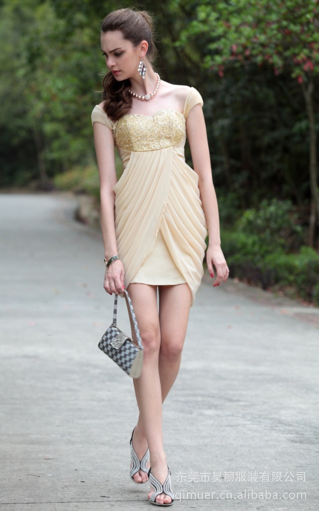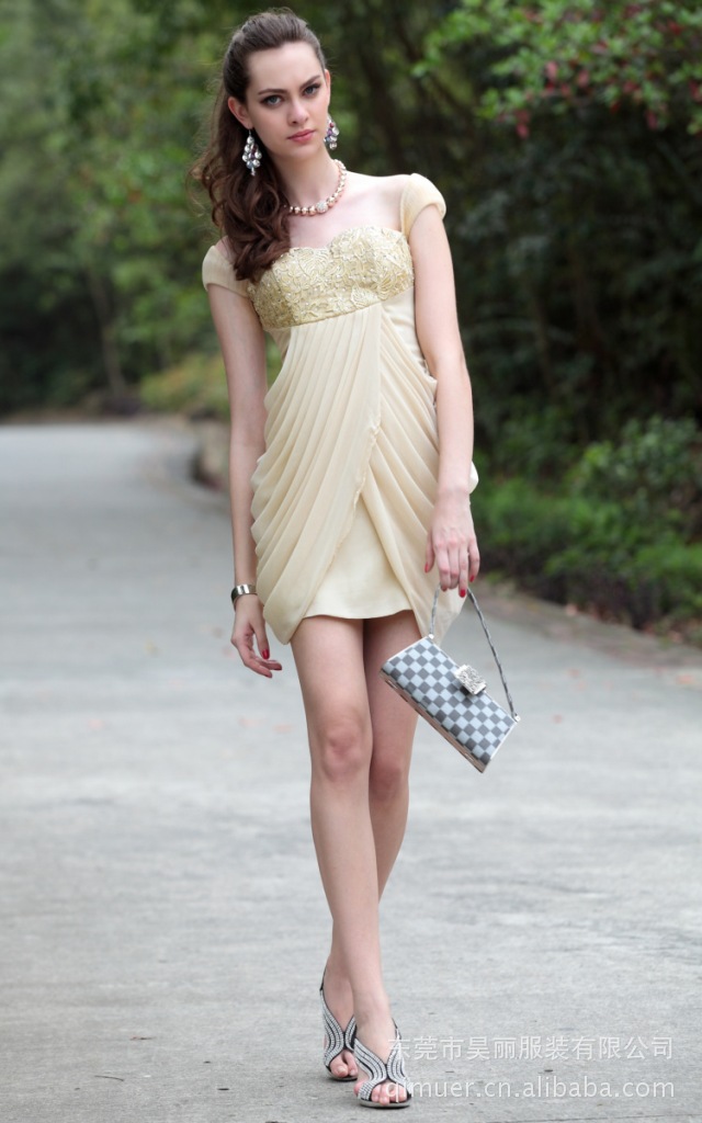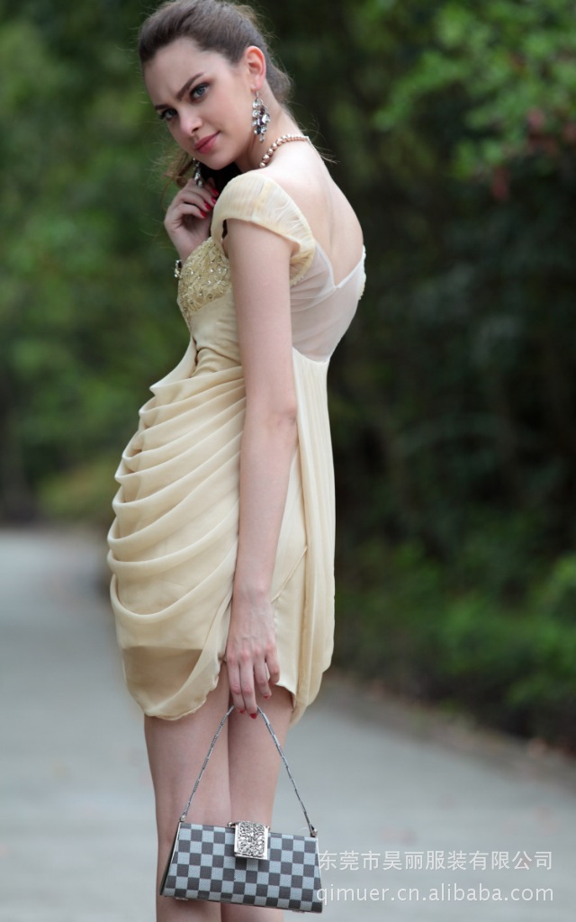 多丽琦小礼服批发82701# 米黄色小礼服 短款礼服 酒会小礼服批发