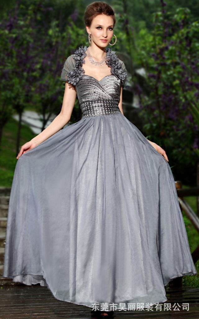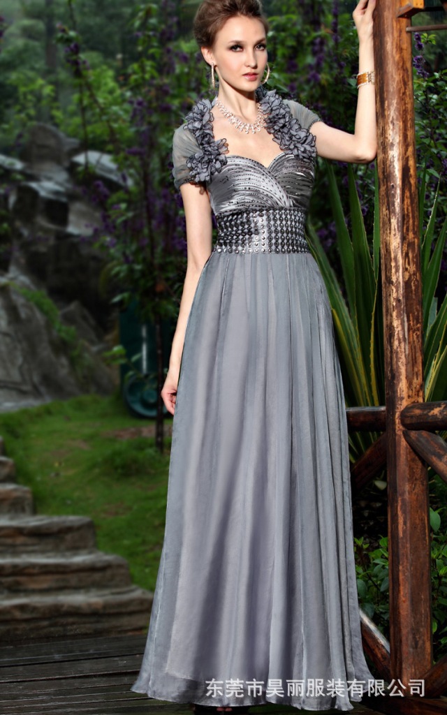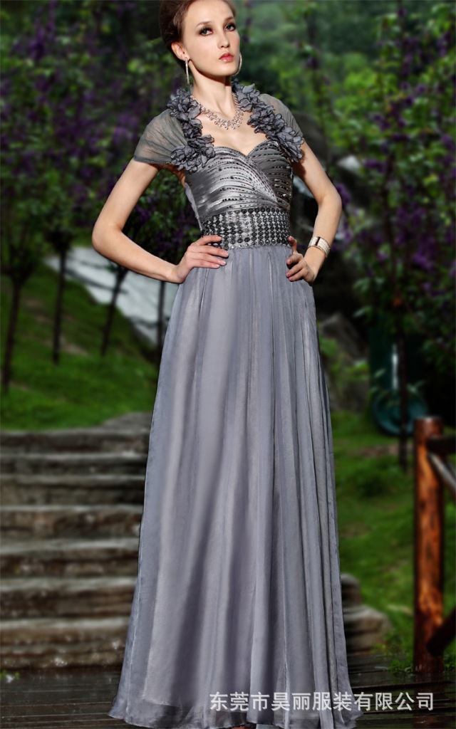 灰色外贸晚礼服/出口欧美 宴会舞会/演出礼服 30367#