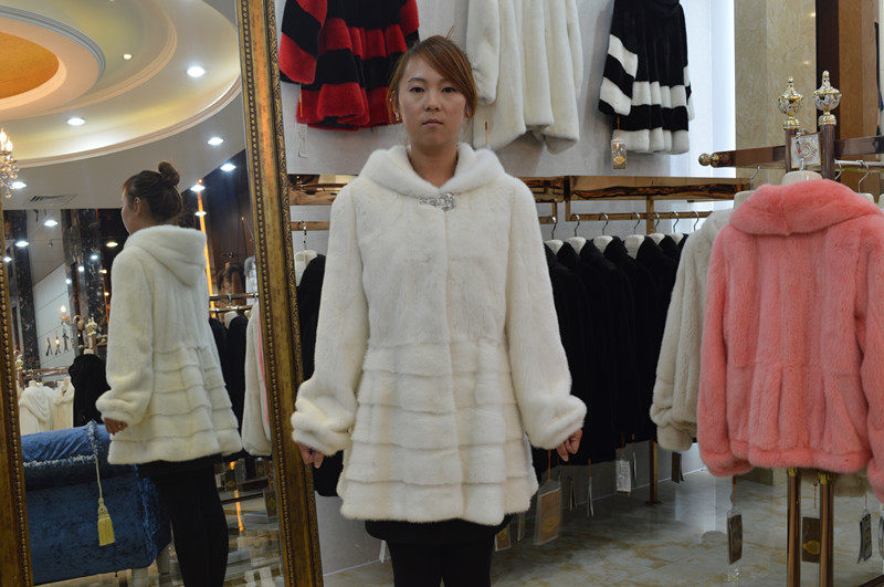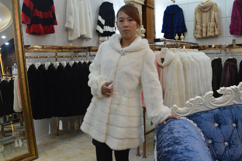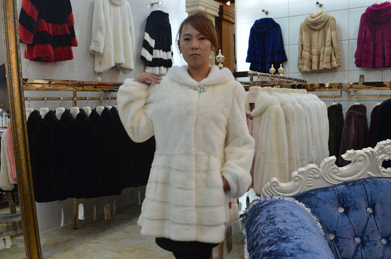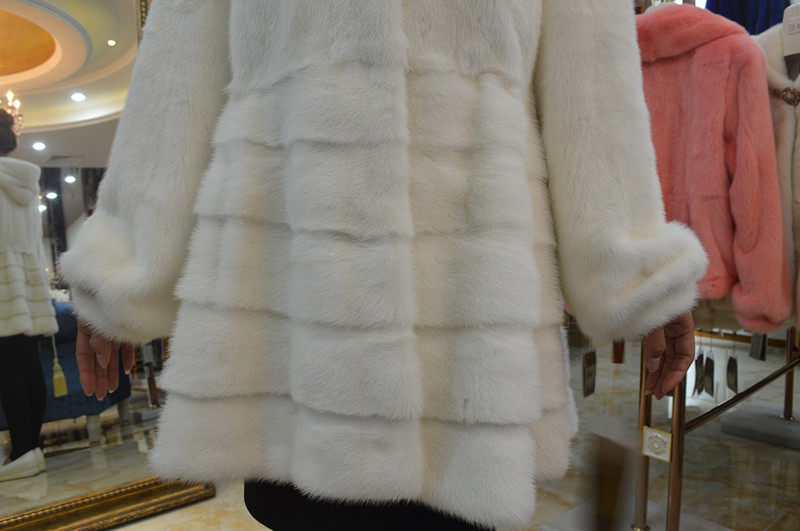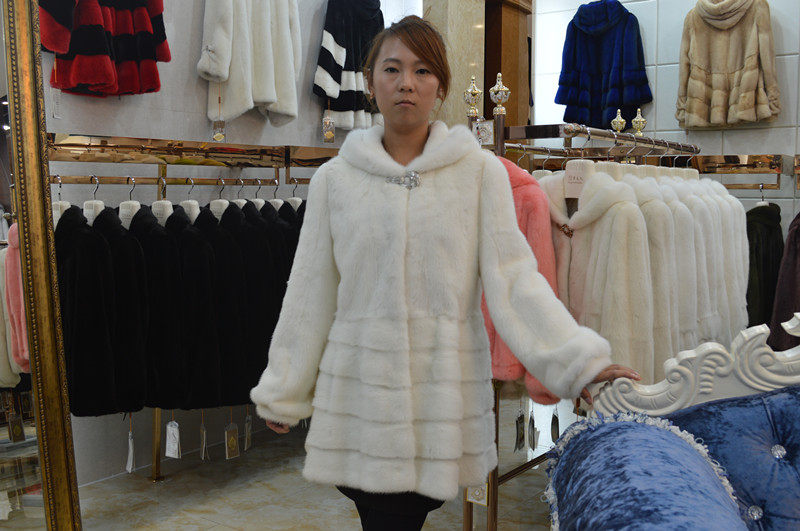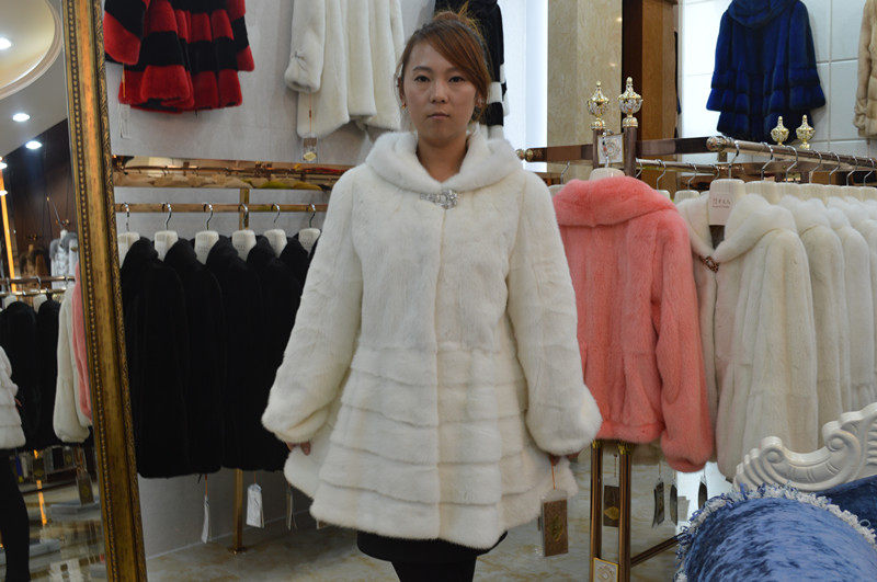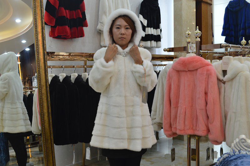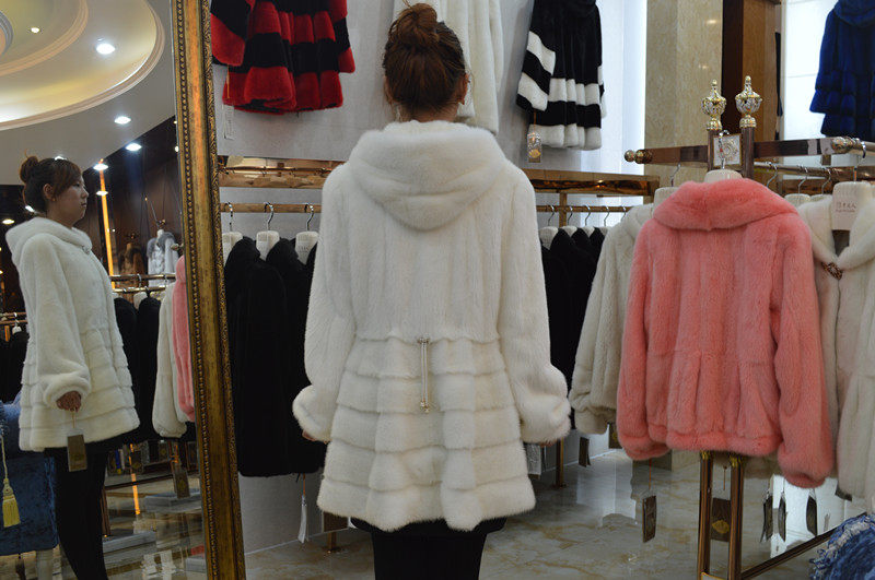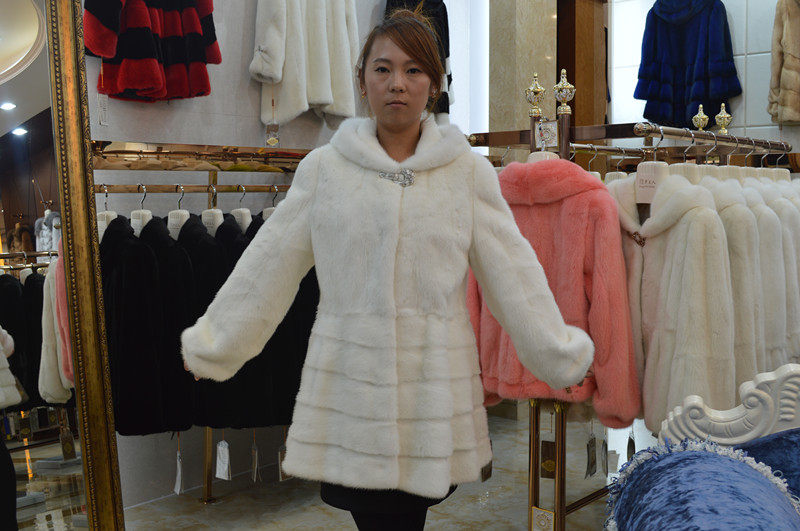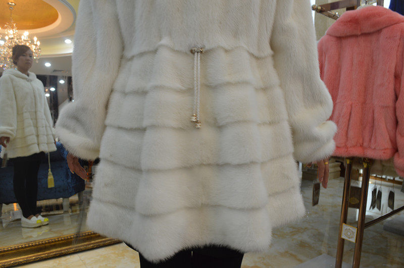 这款横纹裙摆连帽款是由美国进口水貂母貂手工精心设计而成,整体的设计方式是青春 与时尚,给人一种大气、轻盈的感觉。我们来看看整体效果