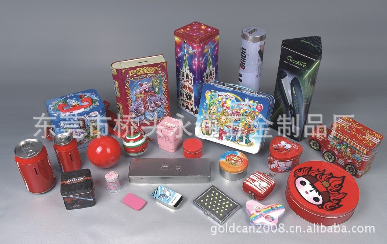 通常按其实际的用途分为月饼罐,铁茶叶罐,咖啡罐,饼干罐,保健品罐,美容罐,手挽罐,储蓄罐,密封罐,奶粉罐,酒罐,圣诞罐,礼品罐,蜡烛罐,金属桶,徽章,杯垫,马口铁玩具,音乐盒,烟盒,文具盒,CD盒,香烟盒,各类异形罐模具等。