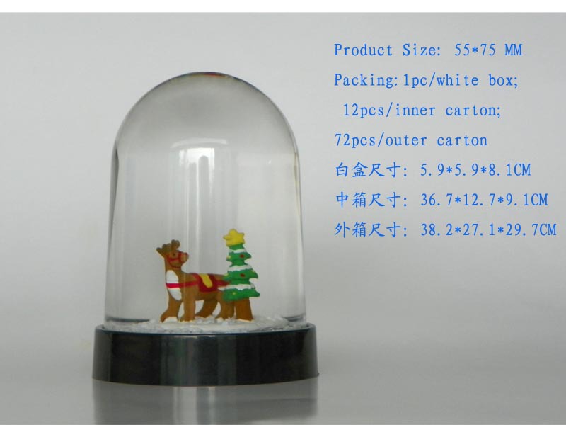 产品特点:半球形水球,压克力水球。内部充有透明油,东京矗立中间。雪花漫天飞舞。