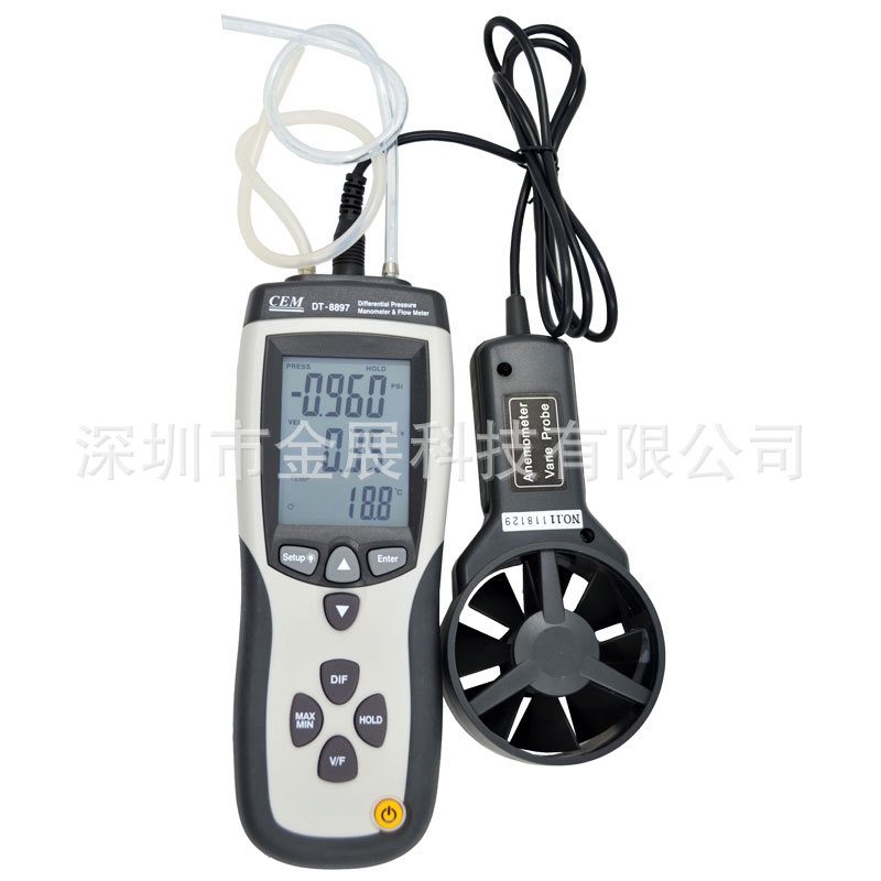DT-8897多功能差压风速仪集差压、风速、风量、风温等测量于一体,内置USB接口,可将数据快速便捷地传送到电脑,超大液晶数字显示屏可及时、准确的记录现场测试数据。