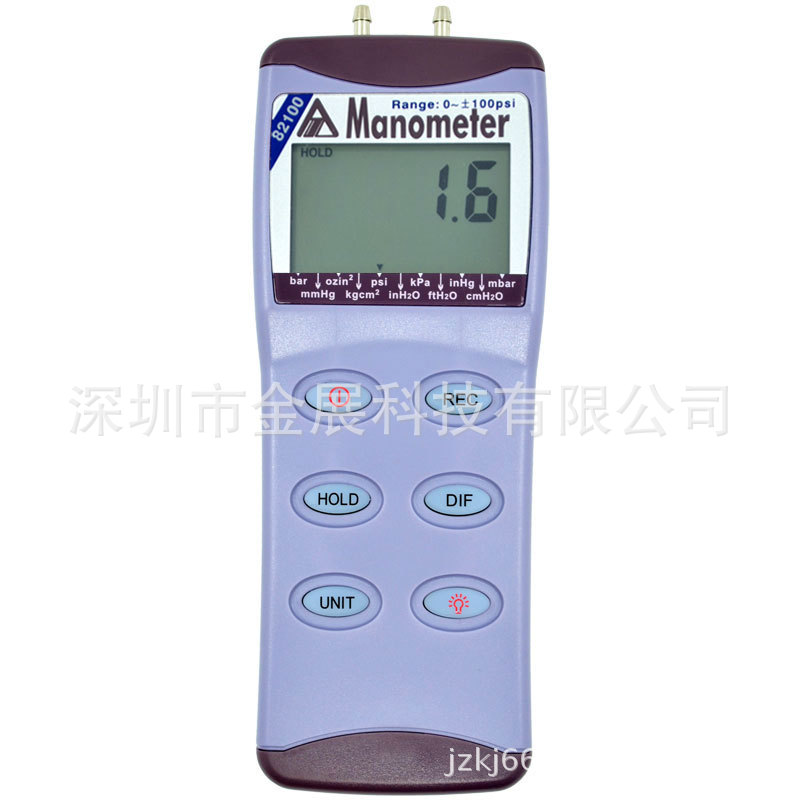 AZ82100压力计能準確測量標準壓力(Gauge pressure)與差壓(differential pressure)。壓力測量範圍為:0~±100PSI,且能顯示最大、最小值。擁有11種壓力單位可選擇及記錄功能。包裝方式附ABS手提盒及PU管,易於攜帶且簡單易用。