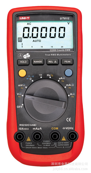 UT61A、UT61B、UT61C、UT61D(真有效值)、UT61E(真有效值)是一系列具备高可靠性、高安全性自动量程手持式万用表。具有超大屏幕数字显示和高解析度的模拟指针显示,全量程过载保护和独特的外观设计,使之成为性能更为新一代的实用电工测量仪表。本仪表系列可用于测量:交直流电压和电流、电阻、二极管、电路通断、电容、频率、温度(℃/℉)、hFE、电磁感应探测等参数。并具备RS232C或USB标准接口、数据保持、相对测量、峰值测量、欠压提示、背光和自动关机功能。 |