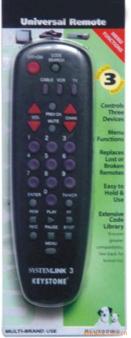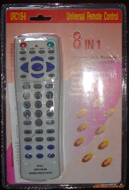 普通多功能遥控器,可以控制TV/VCR/SAT/CAB/CD/DVD等设备,红外线遥控,发射距离8米以上,