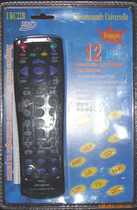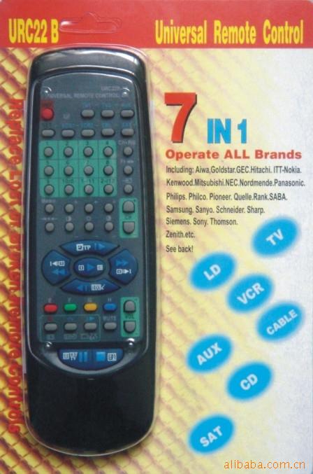 URC22B-7适用于欧洲市场,最新款式,价格优廉,使用方便,是您居家遥控器设备的替代品,产品双泡壳包装,2节3A电池