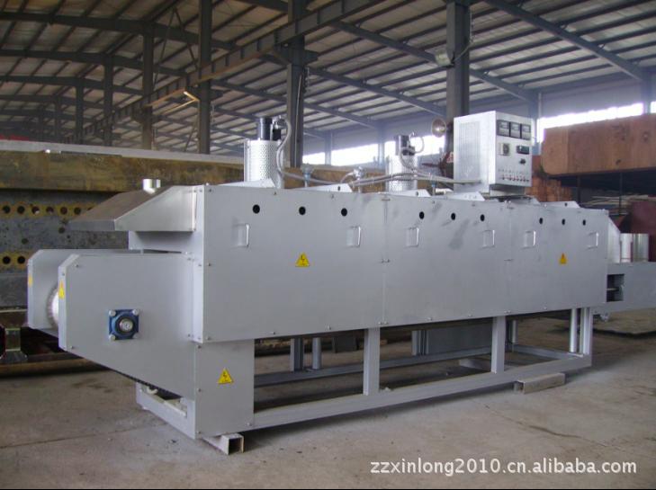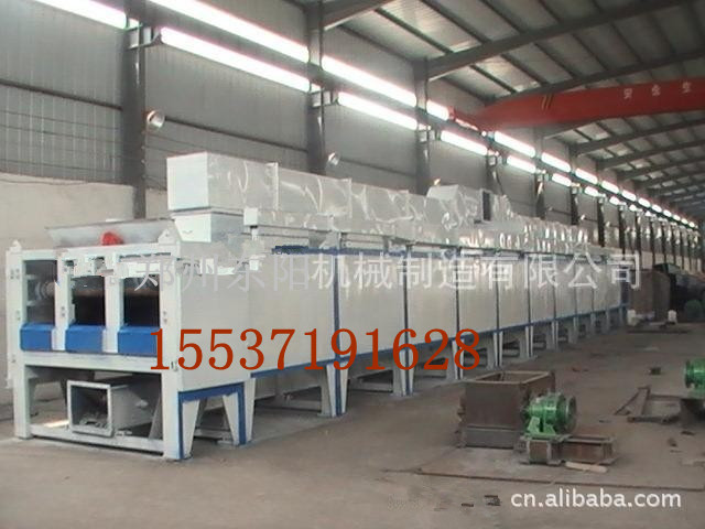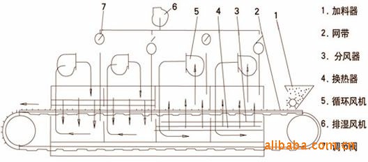 将所要处理的物料通过适当的铺料机构,如星型布料器、摆动带、粉碎机或造粒机,分布在输送带上,输送带通过一个或几个加热单元组成的通道。每个加热单元均配有空气加热和循环系统,每一个通道有一个或几个排湿系统,在输送带通过时,热空气从上往下或从下往上通过输送带上的物料、从而使物料能均匀干燥 产品特点 成批生产连续式干燥; 用于透气性较好的片状、条状、块状或颗状物料的干燥; 对于脱水蔬菜、中药饮片等类含水率高、而物料温度不允许高的物料尤为合适; 对脱水滤饼类的膏状物料,以造粒或制成棒状后亦可干燥; 该系列干燥机具有干燥速度快、蒸发强度高、产品质量好的优点。 工作原理 物料由加料器均匀地铺在网带上,网带采用 12 — 60 目不锈钢丝网,由传动装置拖动在干燥机内移动。 干燥机由若干单元组成,每一单元热风独立循环,其中部分尾气由专门排湿风机排出,每一单元排出废气时均有调节阀控制。 热气由上往下或由下往上穿过铺满物料的网带完成热量与质量传递的进程,带走物料水分。 网带缓慢移动,运行速度可根据物料温度自由调节,干燥后的成品连续落入收料器中。 上下循环单元根据用户需要可灵活配备,单元数量亦可根据需要选取。 计数参数: 型号 | DW-1.2-8 | DW-1.2-10 | DW-1.6-8 | DW-1.6-10 | DW-2-8 | DW-2-10 | 单元数 | 4 | 5 | 4 | 5 | 4 | 5 | 带宽 (m) | 1.2 | 1.6 | 2 | 干燥段长 (m) | 8 | 10 | 8 | 10 | 8 | 10 | 铺料厚 (mm) | ≤60 | 使用温度 (℃) | 50~140 | 蒸汽压力(MPa) | 0.2~0.8 | 蒸发耗量 (kg/h) | 120-300 | 150-375 | 150-375 | 170-470 | 180-500 | 225-600 | 干燥时间 (h) | 0.2-1.2 | 0.25-1.5 | 0.2-1.2 | 0.25-1.5 | 0.2-1.2 | 0.25-1.5 | 干燥强度 (kg/h) | 60-160 | 80-220 | 75-220 | 95-250 | 100-260 | 120-300 | 设备总功率(kw) | 11.4 | 13.6 | 11.4 | 13.6 | 14.7 | 15.8 | 外形尺寸 | 长L(m) | 9.56 | 11.56 | 9.56 | 11.56 | 9.56 | 11.56 | 宽W (m) | 1.49 | 1.49 | 1.9 | 1.9 | 2.32 | 2.32 | 高H (m) | 2.3 | 2.3 | 2.4 | 2.4 | 2.5 | 2.5 | 重量 | 4500 | 5600 | 5300 | 6400 | 6200 | 7500 |