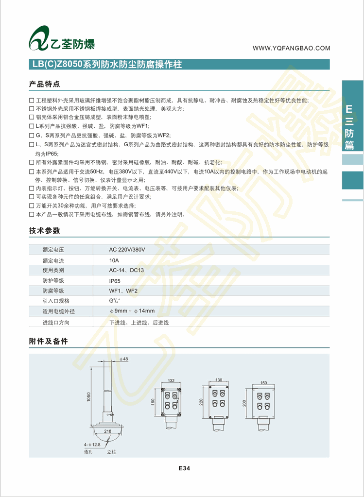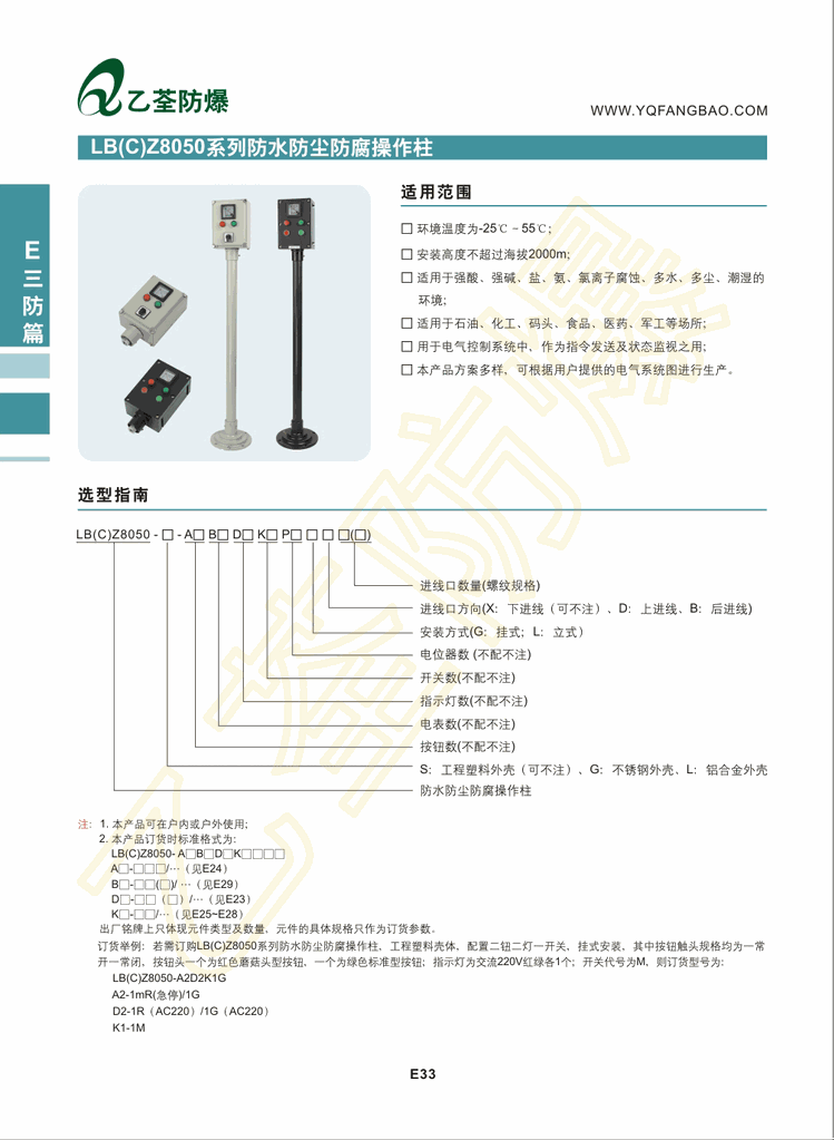 LB(C)Z系列防尘防水操作柱联系方式:乐清乙荃电气科技有限公司,防爆灯品牌生产厂家