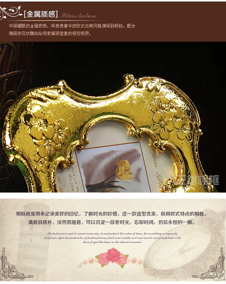 王斌相框批发厂家直销 北欧相框6寸奢华框 欧式复古金银两色