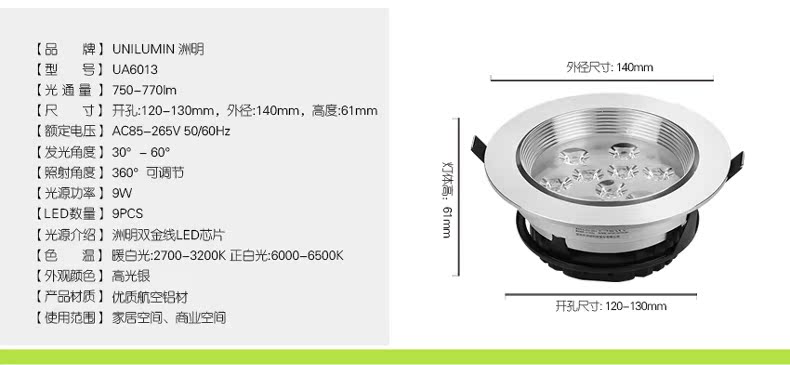 洲明360度旋转高端高光银LED射灯天花灯背景墙射灯9W照画灯聚光灯