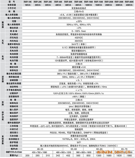 RMP系列UPS全面突破了模拟电路时代的技术瓶颈,数字化控制技术与高精度SMD技术保证其100%适应各种电网环境,单机容量从10KVA到800KVA,广泛应用与电信、银行、证劵、交通、电力、工业等行业。
