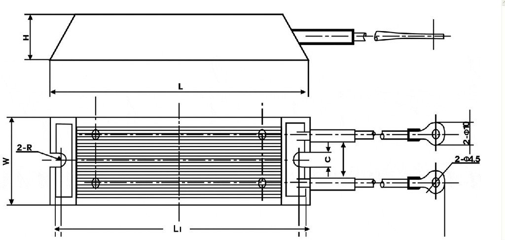 类型 | 尺寸(mm) | 阻值范围 | 功率 | L | W | H | L1 | D | MNB50W | 100 | 40 | 20 | 90 | 4.5 | 0.1Ω~43KΩ | MNB60W | 110 | 40 | 20 | 100 | 5 | 0.1Ω~56KΩ | MNB80W | 115 | 40 | 20 | 105 | 6 | 0.1Ω~75KΩ | MNB120W | 165 | 40 | 20 | 150 | 6 | 0.5Ω~150KΩ | MNB150W | 165 | 40 | 20 | 185 | 6 | 0.5Ω~200KΩ | MNB200W | 215 | 60 | 30 | 200 | 6 | 0.5Ω~200KΩ | MNB300W | 215 | 60 | 30 | 265 | 6 | 0.5Ω~200KΩ | MNB400W | 265 | 60 | 30 | 345 | 6 | 0.5Ω~200KΩ | MNB500W | 335 | 60 | 30 | 425 | 6 | 0.5Ω~200KΩ | MNB1500W | 400 | 50 | 100 | 505 | 6 | 0.5Ω~200KΩ |