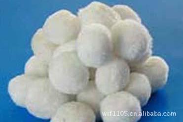 纤维球滤料是由纤维扎结而成的球形滤料,它与传统的钢性滤料相比,具有弹性效果好,不上浮水面,空隙大,工作周期长,水头损失小等优点。在过滤过程中,滤层空隙沿水流方向逐渐变小,比较符合理想滤料由上大下小的孔隙率分布,从而形成了滤速快,截污容量大,过滤效果好,可再生反复使用,不必全部更换,省时省力等优点。