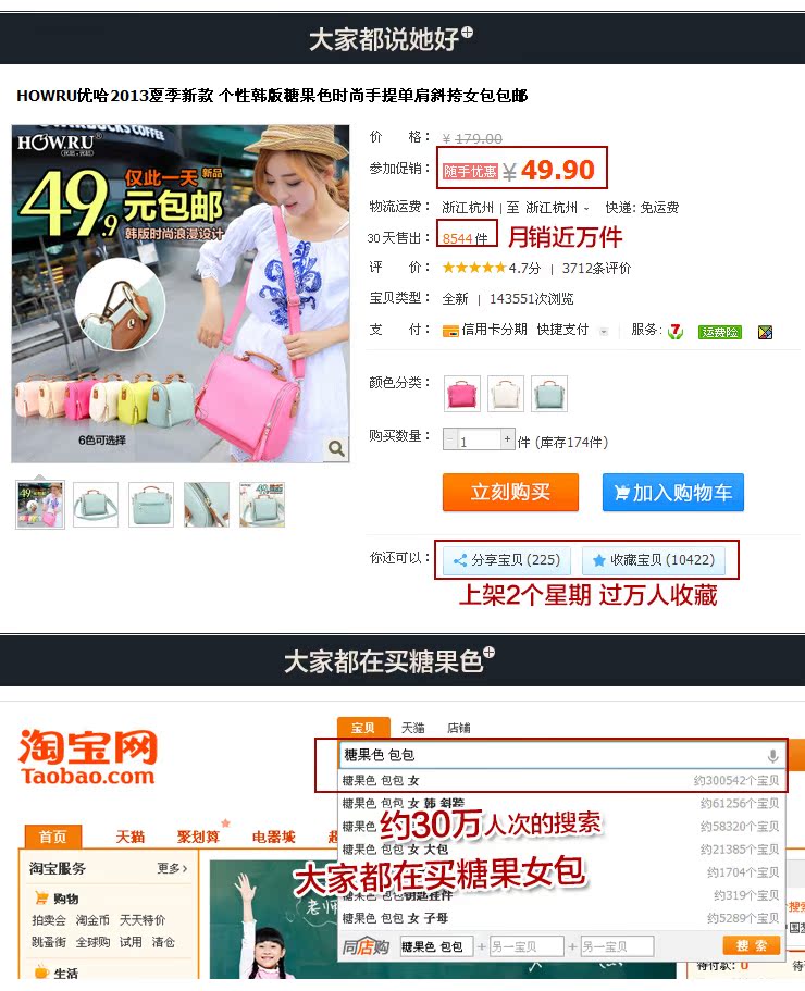 HOWRU2013新款潮女包邮优哈正品韩版糖果色手提单肩斜挎包包女式