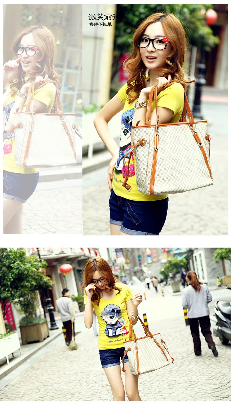 优哈2013夏季新款 韩版时尚车马印花单肩手提女包小清新气质女包