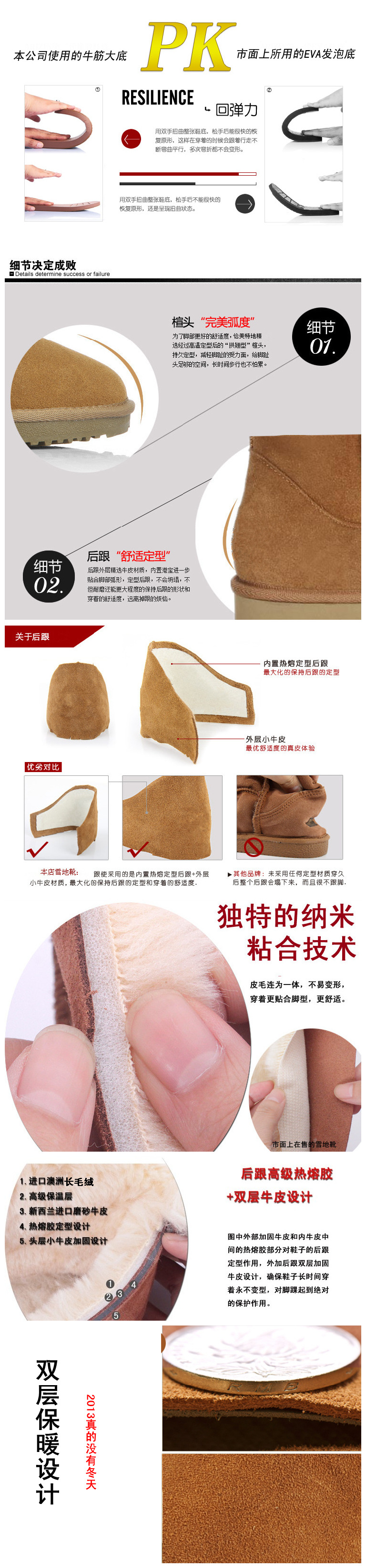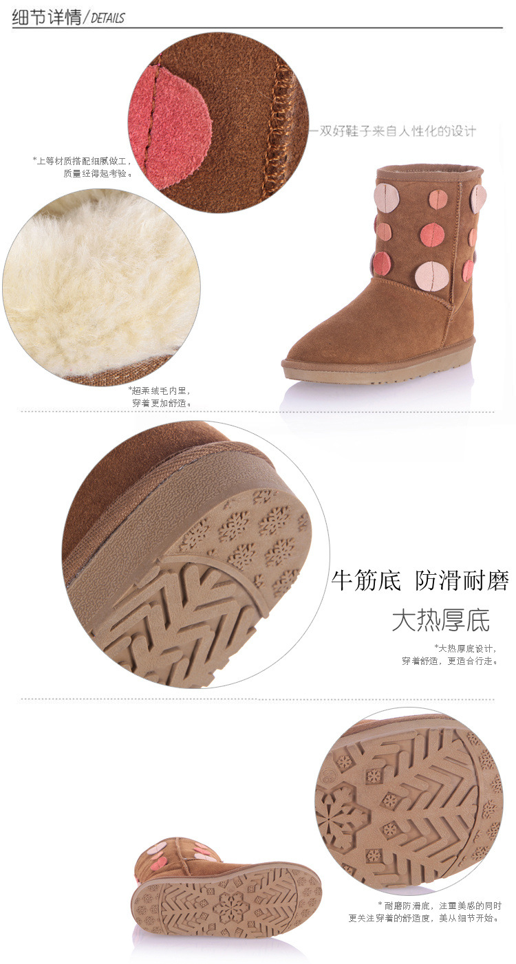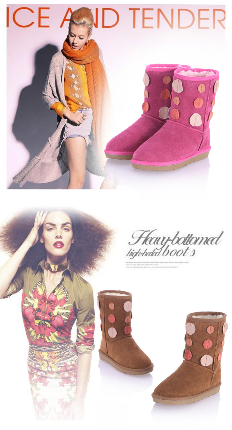 厂家直销 冬季爆款时尚甜美真皮牛翻优质长绒拼色雪地靴女靴