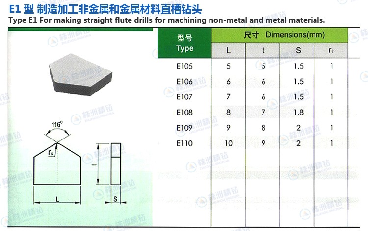 E1型焊接刀片规格型号表