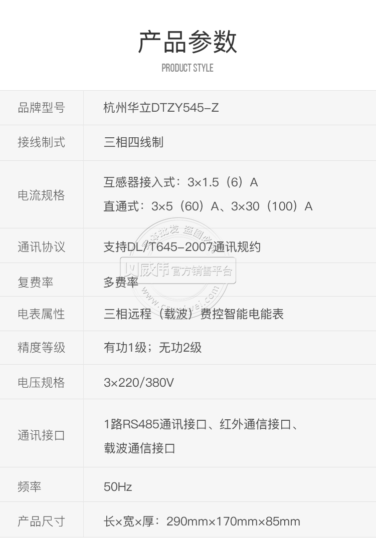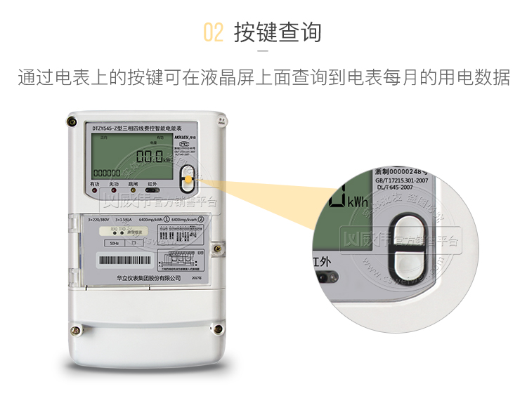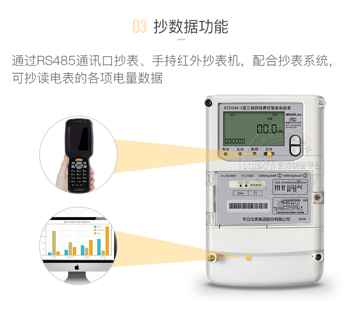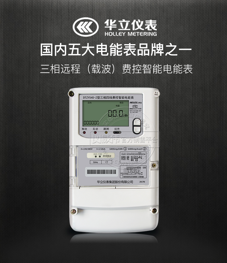 产品名称:杭州华立DTZY545-Z三相四线载波智能电表1级3*220/380V 3*1.5(6)A智能电能表