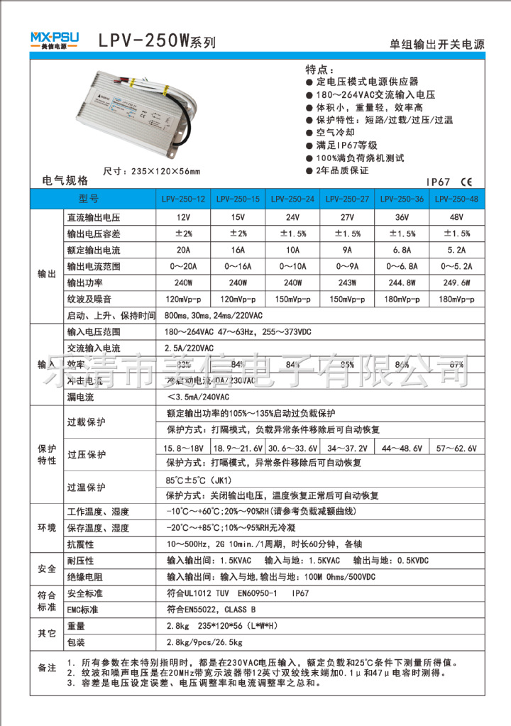 乐清市美信电子有限公司是一家集生产加工、科研、招商代理的专业化公司,公司座落在荣有“中国电器之都”美称的柳市。本公司专业生产开关电源、LED防水电源、LED防雨电源、AC-DC稳压电源。公司以雄厚的实力、合理的价格、优良的服务与多家企业建立了长期的合作关系。公司以诚信为立足之本,以市场为导向,以客户百分百满意为目标,灵活高效地为客户提供全面的电源解决方案。
