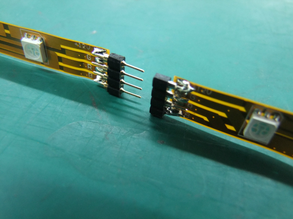4、LED软光条焊接效果:LED软光条的组装分手工焊接和机器焊接两种,手工焊接就是用烙铁,采用最原始的办法进行焊接。这种作业方式出来的产品一是外观难看(焊点大小不一致、助焊剂残留多、焊点不光滑、LED封装被烫坏等),二是静电保护措施不好,很多LED芯片被击穿,导致通电时出现微亮或者不亮的现象。