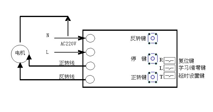 5)学习方法:再选定输出方式之后,长按本控制板学习键,直到灯亮松开,交替按按遥控器上需要控制的两个按键,学习指示灯闪烁三次之后变亮,表示学习成功。如需增加遥控器数量控制时,只需重复斜体字部份的内容即可。最多能学习十六个不同编码的遥控器,第十七次将覆盖第一次记忆的遥控器。(互锁方式除已学习的两键外,另外任一键为停止键)