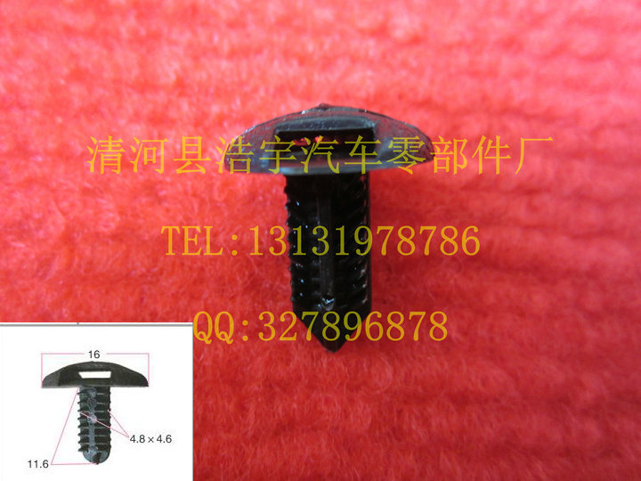 清河县浩宇汽车零部件厂供应丰田系列顶棚扣,型号齐全、质量保证,单次购买1000个以上价格优惠,具体卡扣尺寸见下图: 我厂专业生产汽车用小塑料件,包括 龙铆钉.扣具.雨刮器帽.发动机盖胶堆、胶扣堵塞、塑料钉、孔盖、油管夹,双管卡子,四管卡子,门护板卡扣,顶蓬柱塞卡扣,遮阳板管卡,子母扣,地毯卡扣 ,包角卡扣,顶棚卡扣,玻璃大托架,玻璃后托架,中网大、小卡扣、轮毂罩内、外卡扣,隔热垫大、小卡扣,车门下水条卡扣,大灯内、外卡扣,内饰板卡扣,前档托架扣,工作台大、小卡扣,座椅卡扣,地板压条卡扣,前侧板卡扣,喷水嘴, 扎线带 喉箍等。