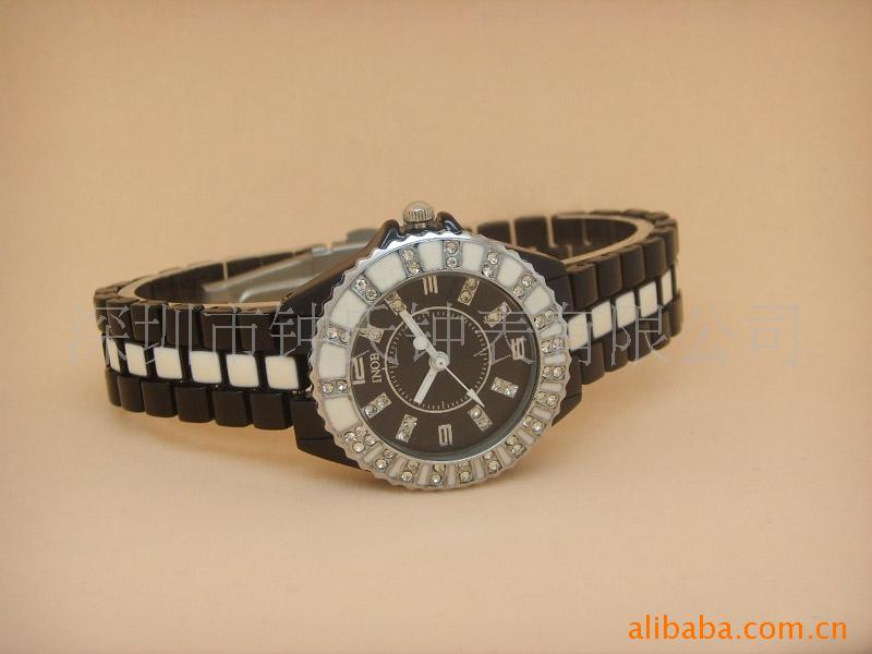 表壳材料:优质锌合金仿陶瓷粘40粒水钻品盒表的