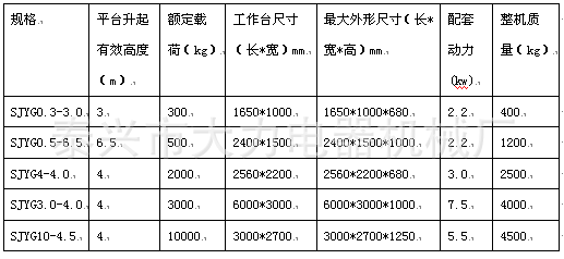 江苏泰兴大力生产的SJYG系列液压升降平台用于仓储物流、企业的生产一线,汽车行业也可作电梯升降使用。升降机规格和型号可根据用户的要求特殊制作,工期短,保证质量。