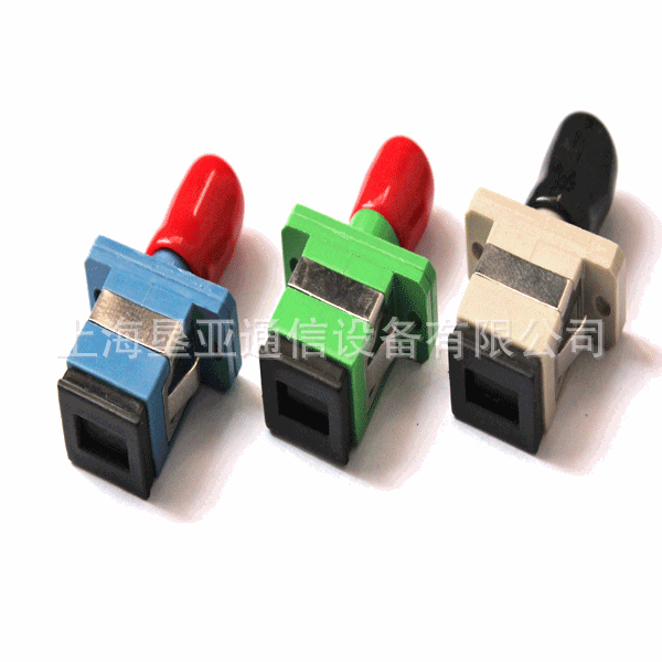 光纤适配器(又名法兰盘),是光纤活动连接器对中连接部件。系列产品包括:FC. SC. ST. LC. MTRJ.广泛应用于光配线架(ODF). 光纤通信设备. 仪器等。 性能超群,稳定可靠。 主要特性: 光纤之间是由适配器通过其内部的开口套管连接起来的,以保证光纤跳线之间的最高连接性能。为了固定在各种面板上,还设计了多种精细的固定法兰。 变换型适配器可以连接不同类型的光纤跳线接口, 并提供了APC端面之间的连接.双连或多连可提高安装密度。 产品类型: FC/PC FC/UPC FC/APC SC/PC SC/UPC SC/APC ST/PC ST/UPC SC/APC 光纤适配器有SC,FC,ST之分 SC代表Standard Connector ST代表Straight Tip FC代表Fiber Connector