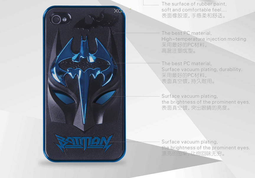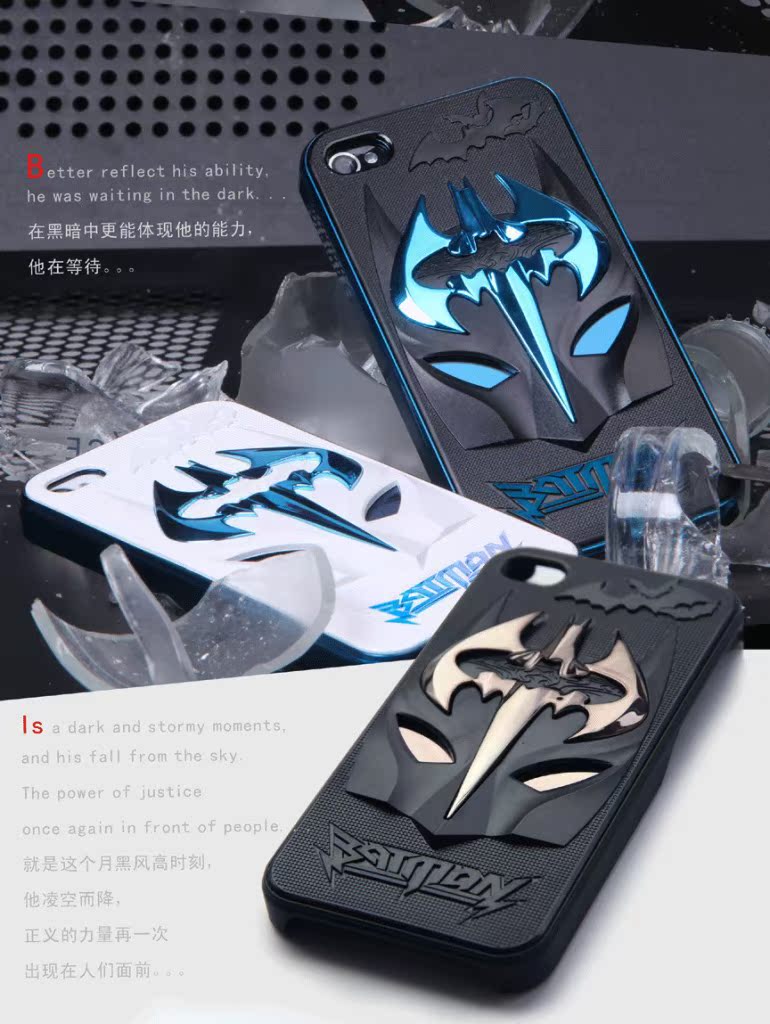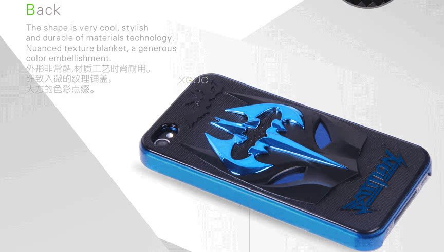 名称:新款 侠立体电镀壳 iphone 4 4S 5手机保护套 金属外壳手机套 适用品牌:苹果 材质:PC 风格:奢华风 工艺:注塑/注射 外型尺寸:130mm*61mm*10mm 颜色:白+黑,白+红,白+蓝,黑+蓝,黑+红,黑+黑 适用型号:iPhone4/4S,iPhone5 |