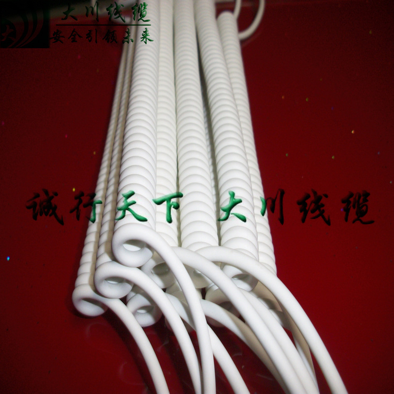 | 弹弓线(又叫弹簧线,螺旋线,伸缩线,曲线)是一种利用可伸缩性来工作的连接线。一般是由TPR/TPU/TPE/ PVC电缆绕制而成。而采用最多的是PU/TPU,PU/TPU是热塑性聚氨酯(TPU)弹性体,是无毒环保的高分子聚合物,具有其它塑料材料所无法比拟的强度高﹑韧性好﹑耐磨﹑耐寒﹑耐高温、耐油﹑耐水﹑耐老化﹑耐气候等特性,同时他具有高防水性透湿性﹑防风﹑防寒﹑抗菌﹑防霉﹑保暖﹑抗微生物、环保型柔性电缆、抗紫外线以及能量释放等许多优异的功能;它的硬度范围50 a-82D,用传统的热塑性塑料的加工方法,如注塑,挤出,压延,吹塑,熔铸成型法等,均可方便地加工该产品。 |