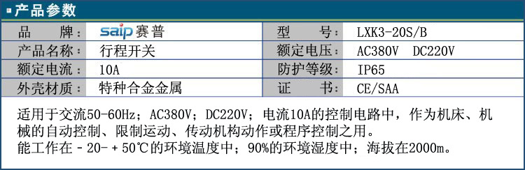 赛普集团已引进国外资深管理与经验丰富的专业人事,以严谨的管理有创意的研发团队,先进的营销直念,在传统产品的基础上创造和发展了新的更适用的且具有良好性价等的产品.Saip产品已获得CE、ROHS、CCC、EMC、VDE、UL等国内国际认证.产品已得到机关行业的认证认可,并远销东南亚、中东、东欧及美州等地域。