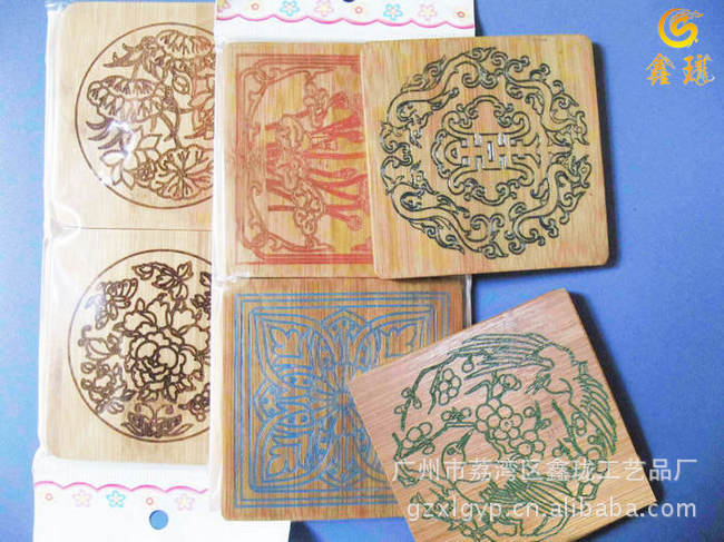 二、杯垫类:实木窗花、青花瓷杯垫、竹制杯垫、无纺布杯垫
