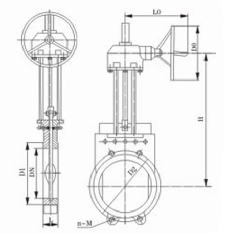 公称通径DN | 结构长度L | D1 | D2 | H | L0 | D0 | n-M |