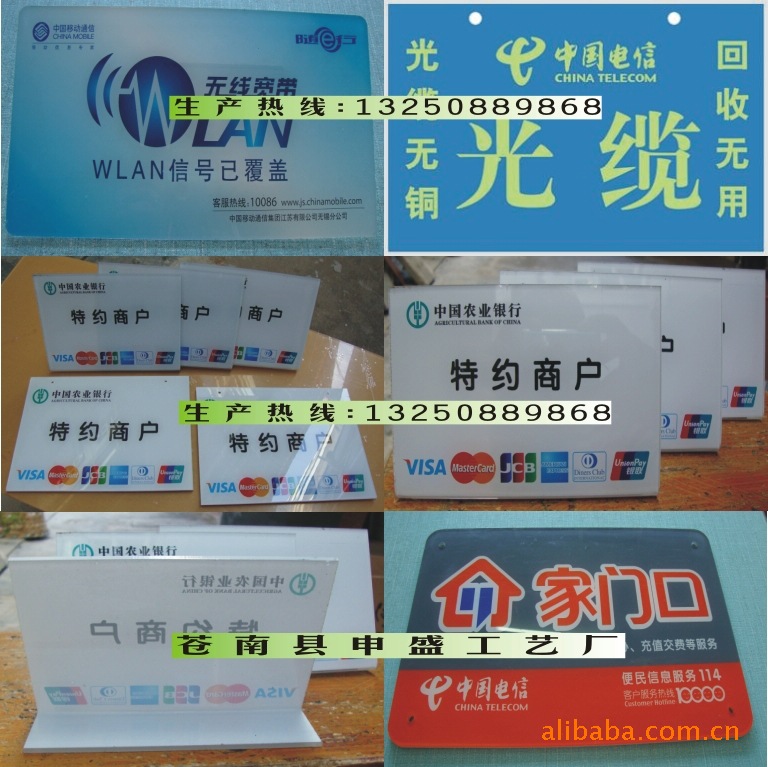 通信标志牌、电信标志牌:材料采用搪瓷、PVC塑料丝印、不锈钢、铝板等,图案、规格按