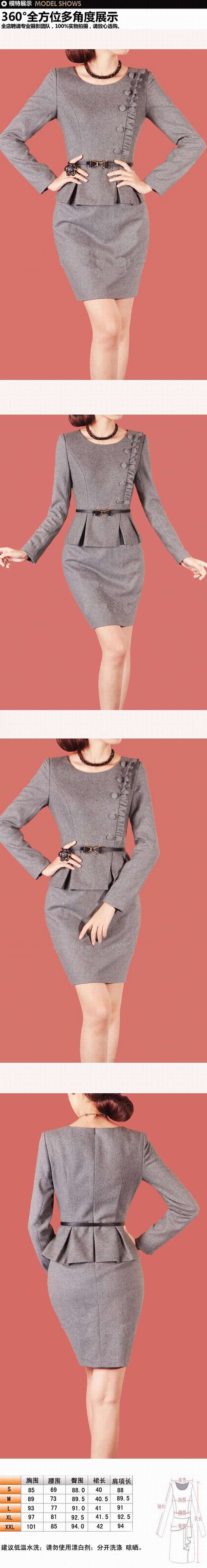 2013春装 OL通勤简约木耳假两件羊毛呢长袖连衣裙 J41有大码