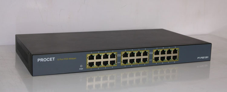 PROCET PT-PSE1201是一款12端口集中网络远程供电器,该供电器适应于室内使用,在176VAC~265VAC输入电压都能正常工作,该供电电源与网络终端设备之间通过超5类线缆连接,适用于10/100M网络环境。