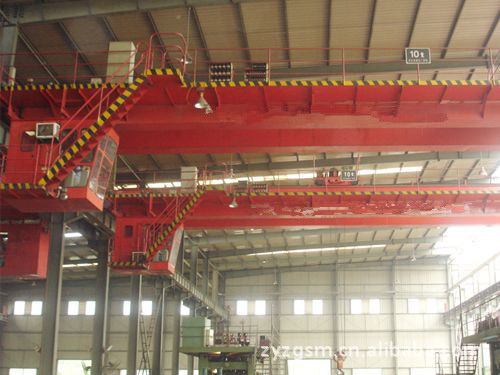 本机结构主要由主梁、横梁、大车运行机构、小车及小车运行机构和固定在小车架上的CD1-AZ型或MD1-AZ型固定式电动葫芦所组成,是一种有轨运行的轻重型起重机,工作制度适用A3-AS,工作环境温度为一25℃-40℃范围内,起重量有5t,10t,适用于跨度 7.5-22.5米,电气设备操纵形式有无线、有线地面操纵和操纵室操纵。