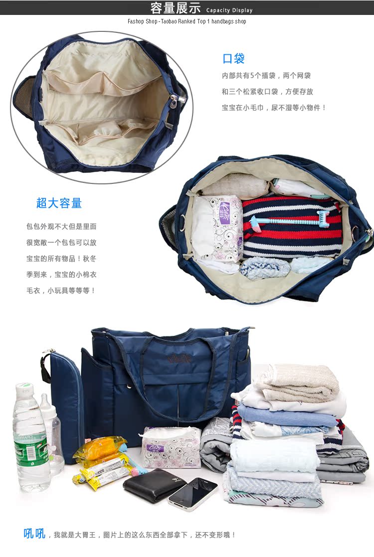 多功能的妈咪包就有多功能的设计,内部有丰富的功能性口袋