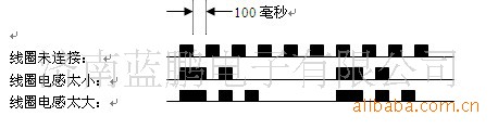 当检测器上电自检时,如果检测到线圈未连接或线圈电感值不在允许范围内,对应的LED指示灯会不停地闪烁。其闪烁情况如下: