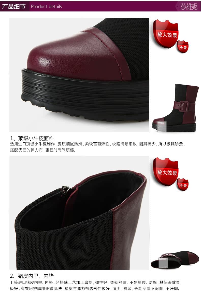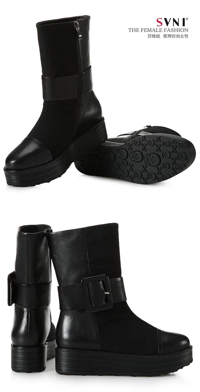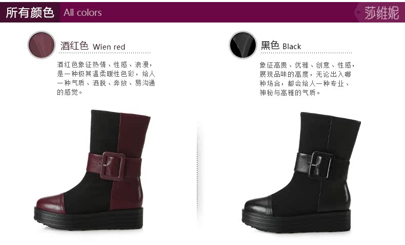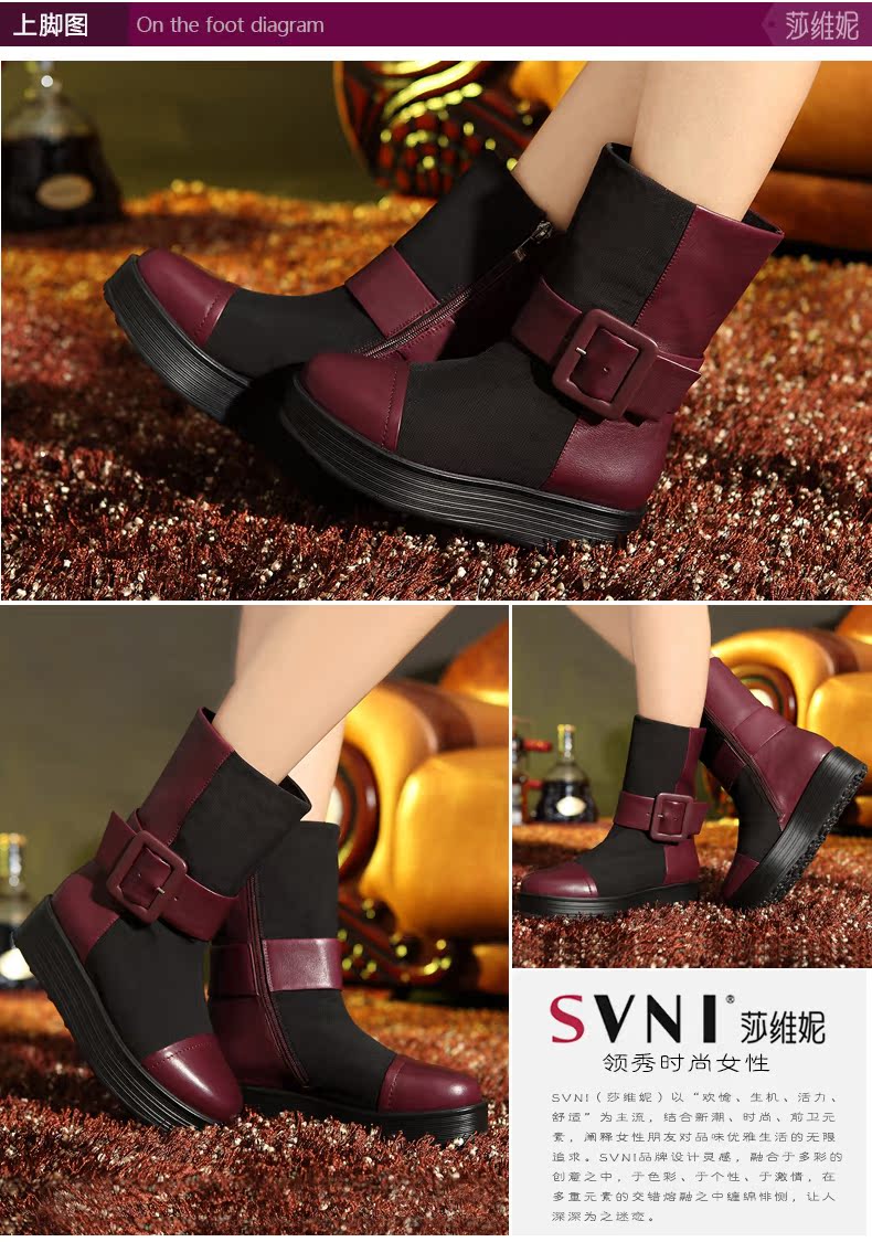 svni/莎维妮 2013秋冬新款保暖靴 甜美休闲中跟真皮靴子 897-132