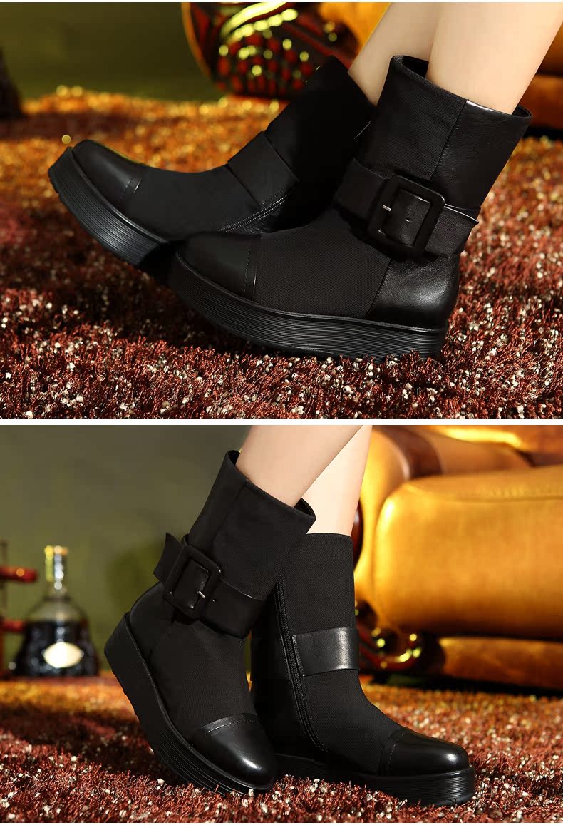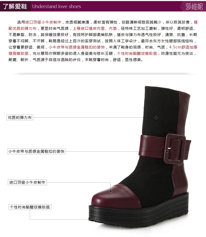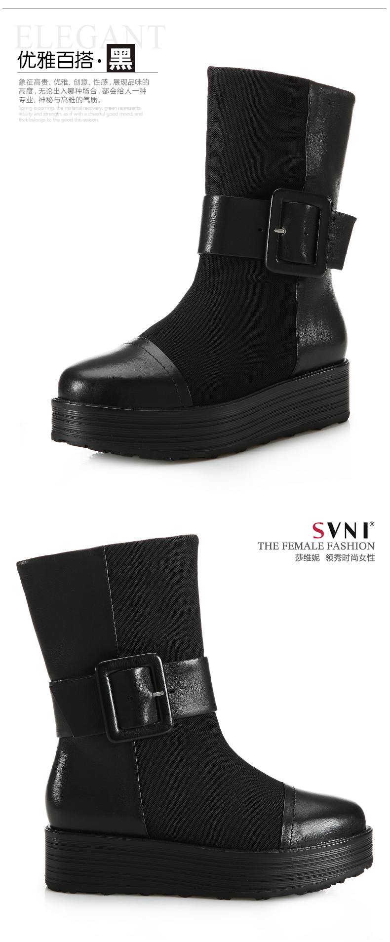 svni/莎维妮 2013秋冬新款保暖靴 甜美休闲中跟真皮靴子 897-132